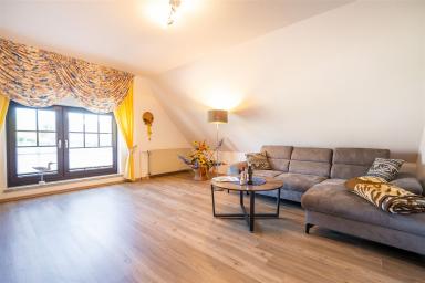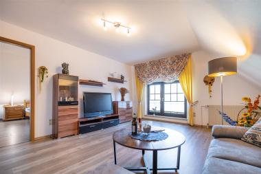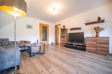 • geräumiges Wohnzimmer mit Couch und TV